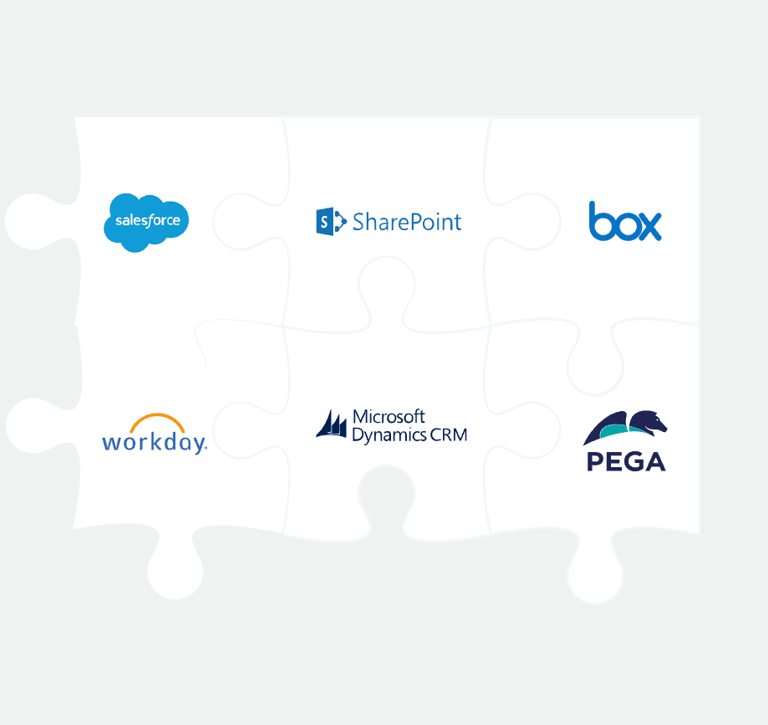 Nous offrons plusieurs connecteurs préprogrammés pour des applications tierces telles que SalesForce, Pegasystems, Laserfiche, Guidewire et Box, ainsi que Microsoft SharePoint et Dynamics 365. Grâce à ces connecteurs, nous avons fait tout le travail d’intégration pour vous. Aucune programmation ni ressource en TI ne sera nécessaire pour intégrer la signature aux applications d’affaires que vous connaissez bien et utilisez au quotidien.